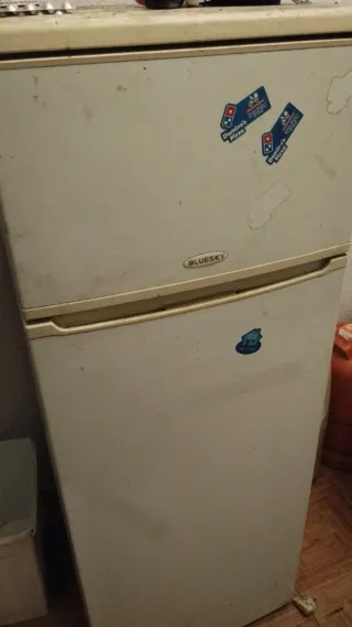 Nevera de dos puertas marca Bluesky en color blanco. - Diseño clásico y funcional. - Ideal para cocinas o espacios pequeños. Se entrega limpia Enfría tanto arriba como abajo perfectamente se vende por comprar una más grande Posibilidad de porte por muy poco mas