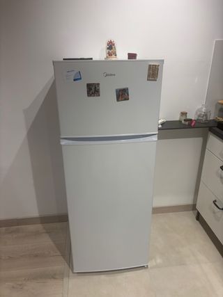Nevera de gran capacidad con congelador superior. - Color blanco. - Diseño moderno. - Marca Midea.