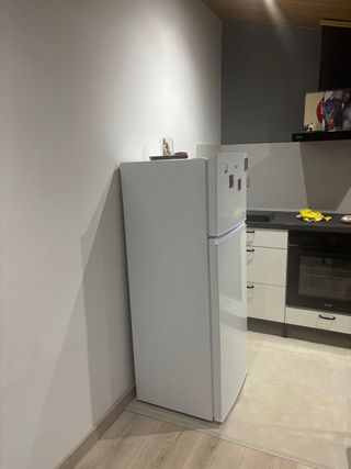 Nevera Candy de color blanco. Cambio nevera perfectamente funcionante porque he comprado una más grande. 3 estantes, cajón para verdura. Ligera y muy fácil de bajar desde un entresuelo (muy pocas escaleras) - Diseño moderno y funcional. - Puerta superior para congelador. - Puerta inferior para refrigerador.