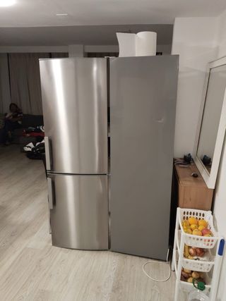 Excelente estado, funcionamiento perfecto — escuchamos ofertas Amplia nevera combi 4 puertas con gran capacidad ideal para familias o cocina grande. Perfecta para renovar tu cocina con un modelo funcional y moderno sin gastar tanto como una nueva.  🔹 Características principales: ✔️ Sistema Total No Frost (no hay escarcha, no necesitas descongelar nunca)  ✔️ Capacidad total ~463 L (≈307 L frigo + 156 L congelador)  ✔️ Dispensador de agua con depósito interno  ✔️ Iluminación LED y panel de control digital  ✔️ Bajo nivel de ruido (~35 dB)  ✔️ Eficiencia energética Clase E  ✔️ Ideal para uso diario con compartimentos bien distribuidos  📏 Dimensiones: • Alto: 181.5 cm • Ancho: 83.3 cm • Fondo: 65 cm Estas dimensiones son perfectas para la mayoría de espacios de cocina estándar.  🕐 Estado: Tiene 1 año y 3 meses de uso — muy poco tiempo. Funciona perfectamente, limpia y bien cuidada. 📦 Recogida: El comprador deberá venir a recogerla (sin envío).