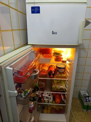 Nevera Teka en buen estado, lista para usar. - Interior con estantes y cajones. - Puerta con compartimentos. - Luz interior. - el unico detalle que tiene es que los comportamientos de las verduras esta quebrado el resto 100% funcional la vendo por motivos de mudanza y se compró una mas grande no hago envios, recoger en calle privilegio de la union, zaragoza