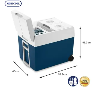 Refrigerador sin rejillas divisorias! Mobicool W40 AC/DC - Nevera termoeléctrica portátil, Conexiones 12/24 / 230 V, 39 litros de Capacidad, Color Azul/Gris Dimensiones del producto 38f. x 56an. x 42al. centímetros Marca Mobicool Capacidad 39 Litros ConfiguraciónCompacto sin congelador Valoración de la BEE 2 Star ColorAzul Nevera arcón termoeléctrica portátil con ruedas 39 litros 12/230V A++ Refrigeración de hasta 18⁰C por debajo temperatura ambiente
