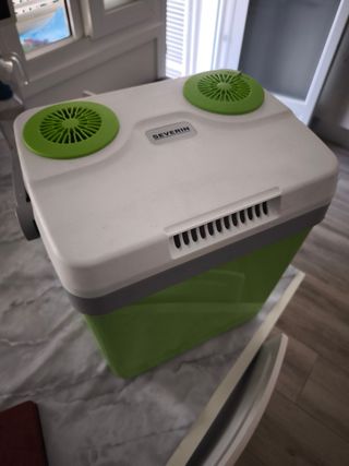 Nevera termoeléctrica Severin de 19 litros, en buen estado. Ideal para llevar bebidas y comida fresca a cualquier parte. - Capacidad: 19 litros - Marca: Severin - Color: Verde y blanco - Diseño compacto y portátil -Termoelectrics, no compresor.