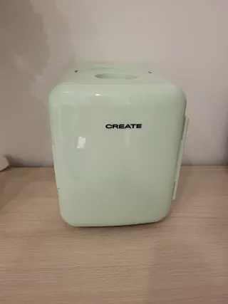 Nevera portátil de la marca Create, ideal para mantener tus bebidas o cosméticos frescos. Muy útil para llevar en el coche y viajes, viene con enchufe de mechero. - Color: Verde menta. - Asa superior para facilitar el transporte. - Puerta lateral.