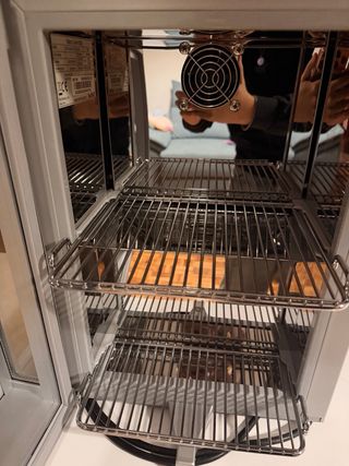 Nevera compacta de la marca Klarstein 47l, ideal para espacios reducidos. Su diseño moderno combina acero inoxidable y cristal. - Puerta de cristal. - Estantes interiores. - Tirador metálico. - Medidas: Altura 53cm Fondo 43,5cm o 49cm con el asa Ancho 47,5 cm