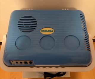 Nevera portátil eléctrica de la marca iBox en color plateado. Ideal para mantener tus bebidas y alimentos frescos. Está como nueva - Incluye todos sus cables - Diseño compacto y moderno. - Panel de control digital.