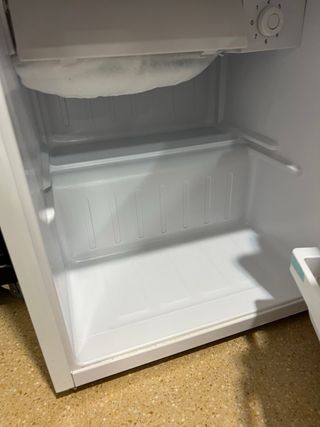 En venta, nevera pequeña Infiniton, en buen estado. - Perfecta para espacios reducidos. - Diseño compacto y blanco. - Incluye una bandeja y un estante de rejilla.