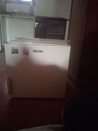 Nevera pequeña alto 48cm ancho 45cm profundidad 45cm tiene un congelador pequeño usado solo para cervezas en local de ensayo