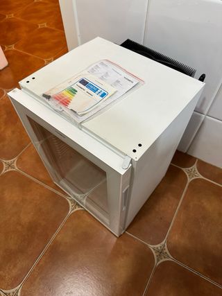 Nevera nueva. Incluye manual de instrucciones. Regulador de temperatura. Silenciosa al 100% al no llevar compresor. Posibilidad de cambiar la apertura de la puerta.