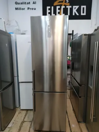 Nevera combi de estilo moderno con acabado en acero inoxidable. - Diseño elegante y funcional. - Panel de control digital en la parte superior. NEVERA MARCA TEKA NO FROST QUE NO HACE HIELO CLASE ENERGÉTICA A+ QUE TE AHORRAS ENERGÍA ALTURA 200 cm ANCHO 60 cm ESTA EN PERFECTAS CONDICIONES SOMOS UNA TIENDA DE SEGUNDA MANO CON LOS PRECIOS MÍNIMO EN TIENDA BARCELONA CON EL SERVICIO TÉCNICO Y GARANTÍA DE 6 MESES Y FACTURA EL TRANSPORTE ES APARTE AL ENVÍO... ENTREGAMOS EL MISMO DÍA AL DOMICILIO MAS INFORMACIÓN LLAMAR AL NÚMERO 676805023 WHATSAPP