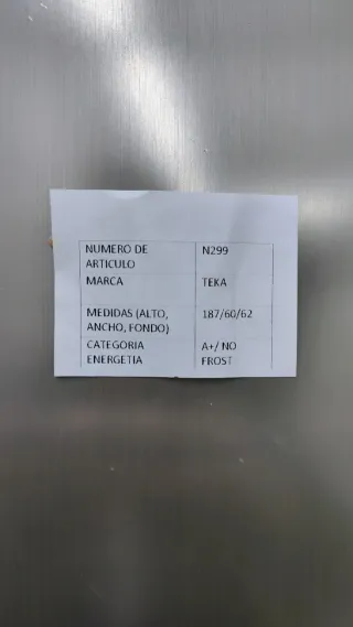 Nevera marca TEKA altura 1:88 cm ancho 60cm class A+ energia nofrost muy bien funcciona grantia con factura grantia de 6 mesess entrega en Barcelona gratis muy poco gasto de luz para ver lo mas cosas vista mi profile gracias llama o por WhatsApp 664448978.
