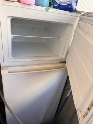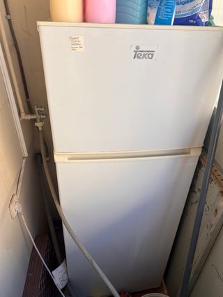 Nevera blanca de la marca Teka con congelador integrado en la parte superior. Ideal para mantener tus alimentos frescos y congelados. Venir a recoger.
