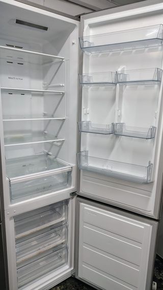 Nevera TEKA con diseño moderno y espacioso poco uso perfecto estado - Estantes de cristal. - Cajones Huge Box para alimentos. - Compartimento Fresh & Vegetable. - Botellero integrado. -Acero inoxidable -Control de temperatura independiente para congelador y refrigerador -Alarma puerta abierta -Total No Frost -Funciona perfectamente -Con garantía de 6 meses -Transporte e instalación -Subida y recogida de electrodoméstico antiguo -Entrega el mismo día con factura -MEDIDAS:Alto:1'85 Ancho:60
