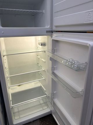 Nevera combi teka en buen estado. - Medidas compactas, ideal para espacios reducidos. - Dos compartimentos: refrigerador y congelador. - Cajones espaciosos para una organización óptima. Nevera combi Teka en buen estado. Ideal para almacenar tus alimentos. - Nevera combi con congelador. - Diseño blanco. - Tres cajones en el congelador. - Tres baldas en el frigorífico. Frigorifico con congelador de 60 de ancho × 61 de fondo × 187 de alto en muy buen estado, practicamente nuevo.