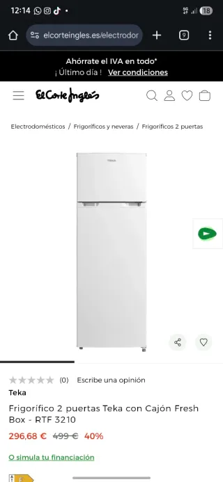 frigorifico combi (nevera+confelador) Teka