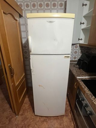 Nevera Zanussi de color blanco. - Diseño moderno con línea curva en la parte superior. - Separación visual entre el compartimento del frigorífico y el congelador. Tiene los cajones interiores rotos, pero funciona perfectamente. Hay que bajarla de una tercero sin ascensor.