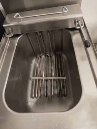 Freidora eléctrica industrial de 1 seno de la marca Zanussi. - Medidas: Ancho 35 cm, Fondo 60 cm, Altura 28 cm. Bar panadería restaurante pizzería confitería pastelería cafetería ceveceria pubs hamburguesería carnicería pescadería nevera frigorífico marisqueria embutidos carne charcuteria nevera enfriador botellero bebidas energéticas coca cola cerveza vino congelador horno cocina lavandería electrodomésticos cocina hogar hostelería .... MUCHOS MÁS OBJETOS EN MI PERFIL..
