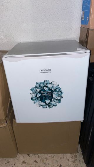 Nevera compacta Cecotec Grandcooler, ideal para espacios reducidos. Su diseño blanco y moderno se adapta a cualquier ambiente. - Capacidad: [Especificar capacidad si se conoce] - Color: Blanco - Modelo: Grandcooler - Marca: Cecotec