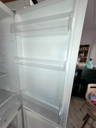 Nevera Fagor en color blanco. Es no frost y antibacteriano. Funciona a la perfección solo que como se puede ver los cajones lo han dado todo y hay uno faltante en la puerta.