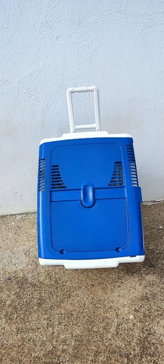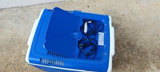 Posibilidad de entrega en mano en Madrid Nevera portátil de 12V-220V, ideal para mantener tus alimentos y bebidas frescos. - Color gris con detalles en azul. - Incluye compartimento para ventilador y rejilla. - Solo utilizada en una salida a camping. Mantiene muy bien los alimentos y la bebida fría, también tiene modo de calentar pero no lo he utilizado. Está nueva.