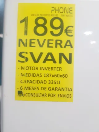 Nevera SVAN de color blanco. - NO FROST - MOTOR INVERTER - MEDIDAS 187x60x60 - CAPACIDAD 335LT - 6 MESES DE GARANTÍA ➡️🚚 CONSULTAR POR ENVÍOS Tienda física flash electrod carruss /c/diagonal 33 elche alicante 606701196