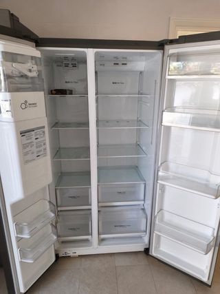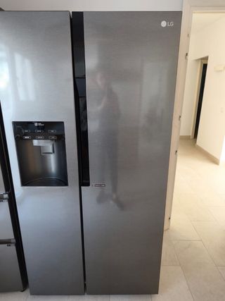 Nevera LG de estilo americano, con acabado en acero inoxidable. El modelo se ve en la imagen del final. Precio nueva 1199€ - Dispensador de agua y hielo integrado. - Diseño moderno y elegante.