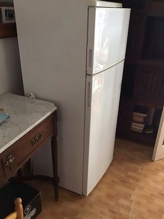 Nevera Balay de dos puertas en buen estado. Ideal para almacenar alimentos. - Medidas compactas, perfecta para espacios reducidos. - Diseño clásico y atemporal en color blanco. - Dos puertas para una mejor organización.