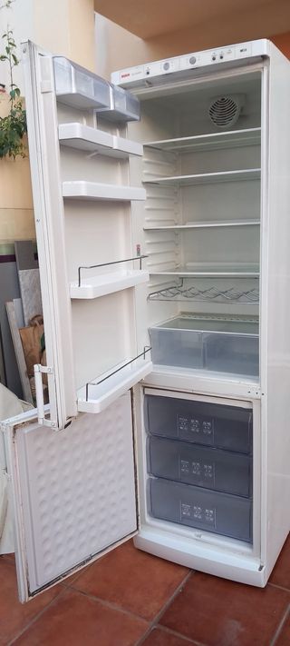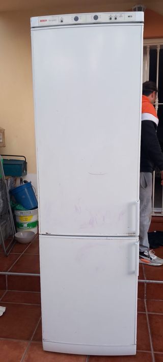 Nevera Bosch blanca de estilo antiguo. Está en buen estado, aunque muestra señales de uso. Falta montar los estantes mejor. Es panelable - Modelo antiguo de Bosch. - Color blanco. - Dos compartimentos principales. -Totalmente funcional✅ -No hago envíos, solo venta en persona (excepto en la zona de Fuengirola/Mijas)