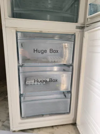 Nevera blanca marca beko , se cambia por reforma pero funciona perfectamente, las baldas tienen rotos algunos perfiles pero las apañe y se mantienen bien , goma de cierre algo desgastada o rajada , por lo demas los cajones del congelador y demas plásticos estan bien. Medidas ancho para hueco de 60cm Alto 189 aprox . Electrodomésticos grandes ikea media markt urge casa Se entrega en magan toledo 45590