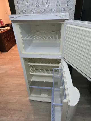 Nevera y congelador en buen estado, ideal para tu hogar. - Diseño blanco. - Puerta abatible.