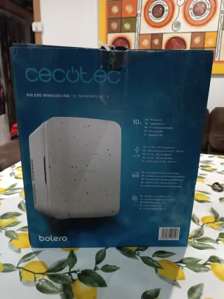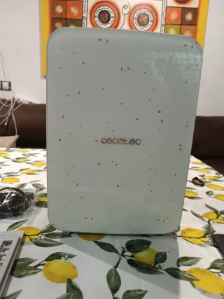Nevera portátil Cecotec Bolero de 10 litros. Diseño moderno con acabado salpicado en varios colores. - Capacidad de 10 litros. - Color base azul claro. - Diseño con motas de colores. Está totalmente nueva.