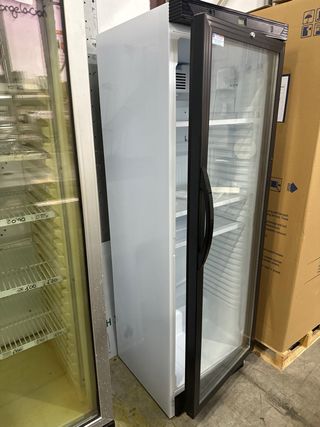 Nevera con puerta de cristal nueva a estrenar. Luz LED en el marco de la puerta. Estantes ajustables. Patas regulables. Medidas 59.5 x 60 x 184. Precio + IVA