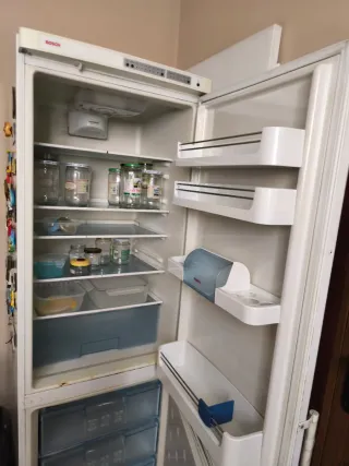 Nevera de la marca Bosch. Ideal para mantener tus alimentos frescos. - Color blanco. - Puerta abatible. - Estantes interiores.