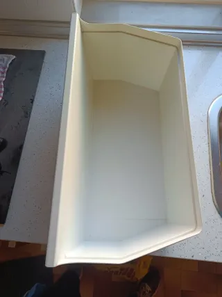 Cajón de nevera o congelador. - Color blanco. - Diseño rectangular. Medidas en foto, no tengo modelo, se tiro la nevera y solo conservo el cajón. Presenta un daño que se observa en foto