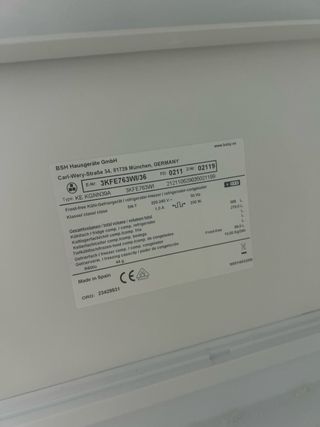 Nevera de la marca Bosch en buen estado. - Color gris y blanco. - Diseño moderno.