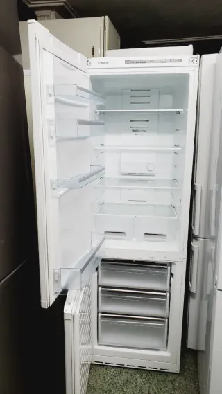 És una nevera marca Bosch, pertenece a clase A++, no Frost,color gris, 185x60 y funciona perfectamente. 6 meses de garantía y nosotros nos encargamos del transporte, instalación y retirada del viejo aparato.(se paga en efectivo). Solo vendemos en partes de Barcelona .