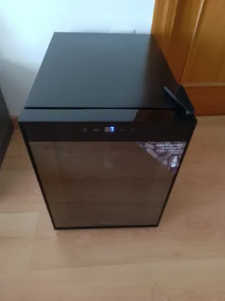 Nevera para vinos Cecotec Grandsommelier con capacidad para 12 botellas. Diseño moderno y elegante en color negro. - Puerta de cristal tintado. - Panel de control táctil con pantalla LED. - Estantes interiores extraíbles.