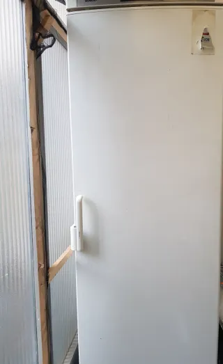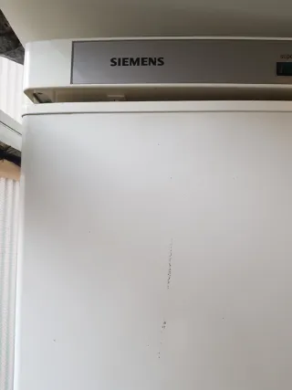 Nevera vertical de color blanco. - Marca Siemens. - Tirador blanco. - Etiqueta de advertencia en la parte superior derecha. Funciona perfectamente.