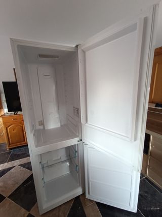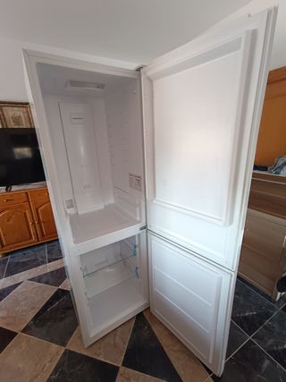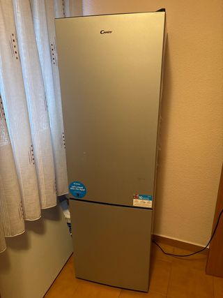Nevera de la marca Candy en color plateado. Cuenta con un diseño moderno y funcional. - Puerta superior y cajón inferior. - Tiene el cajón de la fruta y uno del congelador con el plástico roto. - Un año y medio de uso (aún conserva los plásticos laterales como se ve en una de las fotos. Se ha cambiado porque queríamos un modelo no frost