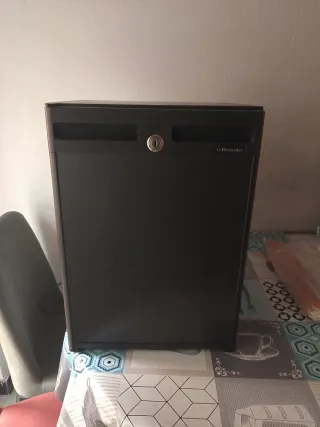 Se vende lote de neveras minibar de la marca Electrolux. Ideal para habitaciones de hotel o como nevera auxiliar. - Color negro. - Diseño compacto. - Incluye cerradura con llave.