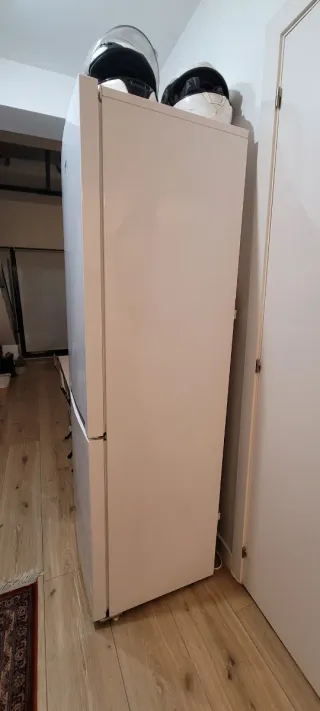 Nevera Beko de color blanco. - Diseño vertical. - Tirador integrado. - alguna marca debido a la mudanza -todas las baldas -ningun cajón roto