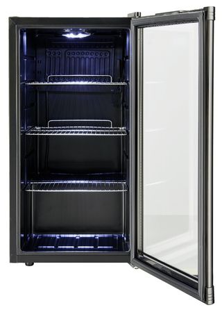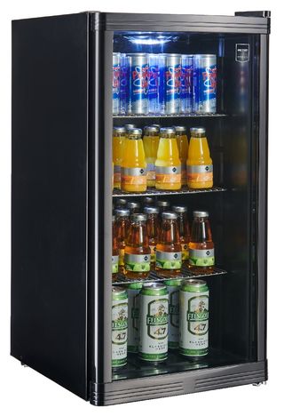 Mini frigorífico GPC1088 de METRO Professional color negro, sin estrenar y en caja (sin abrir) Dimensiones: 49 x 43 x 83 cm (ancho x fondo x alto) Capacidad neta de almacenamiento en frío de 88 L, equivalente a 90 latas de 0,33 L Estantes diseñados para una carga máxima de 8 Kg, ajustables 3 rejillas de soporte de acero inoxidable Puerta de vidrio con doble acristalamiento abisagrada a la derecha / apertura a la derecha Patas delanteras regulables en altura Termostato mecánico: se puede regular la temperatura entre 4 y 18°C con temperaturas exteriores de hasta 30°C y humedad relativa del 55% NO ENVÍO # frigo nevera regalo barato barata #