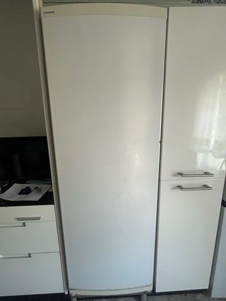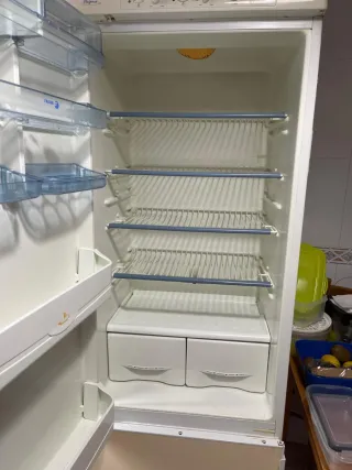 Frigorífico combi Miele en buen estado, a pesar de los años. Ideal para quien busca un electrodoméstico de calidad. Funciona bien salvo que desde hace un mes la nevera acumula hielo. El congelador va perfecto. Medidas aproximadas 194x59x60cm. Venta por renovación de cocina. - Modelo antiguo de Miele. - Combi (frigorífico y congelador). - Diseño clásico.