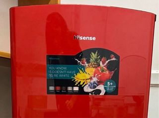 Nevera Hisense de color rojo vibrante. Un toque de color para tu cocina. - Diseño moderno y llamativo. - Acabado brillante.