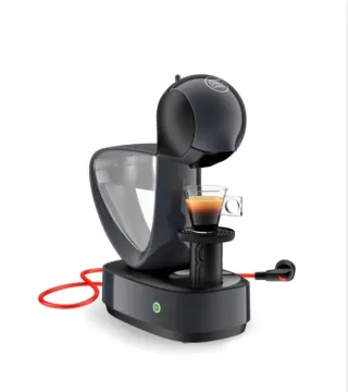 Cafetera de cápsulas Dolce Gusto en color negro. Diseñada para preparar café de forma rápida y sencilla. - Depósito de agua transparente. - Bandeja recogegotas ajustable. - Cable de alimentación rojo.