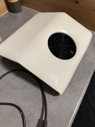Aspiradora de uñas con un diseño moderno y funcional. Ideal para mantener el área de trabajo limpia. - Color blanco crema. - Rejilla de ventilación negra. - Cable de alimentación incluido. De regalo van las pincitas para las uñas