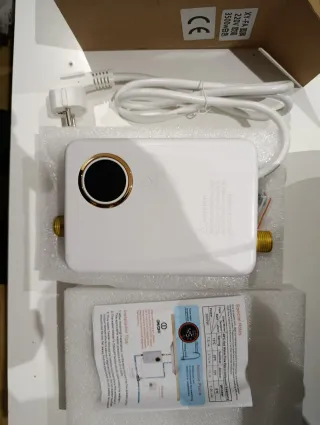 Calentador de agua eléctrico compacto y eficiente. - Modelo XY-FA con pantalla redonda. - Voltaje: 220V. - Potencia: 3500W. - Color: Blanco. - Conexión europea Ideal para segundas residencias, camper, caravana, mobil home Lavamanos. Mini calentador agua #termo #calentador #estufa #aguacaliente #caldera