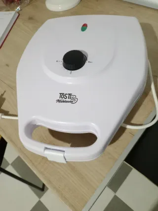 Tostadora eléctrica Tosti para preparar arepas. - Color blanco. - Indicador luminoso. - Control de temperatura.