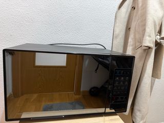 Microondas de color negro con acabado brillante. Cuenta con un panel de control digital. - Puerta con cristal reflectante. - Diseño moderno y elegante.