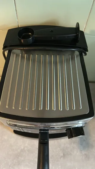 Tostadora de la marca Princess con acabado en negro y detalles plateados. Su diseño moderno se adapta a cualquier cocina. - Exterior de plástico negro. - Placa central de acero inoxidable con logo. - Indicador de calor.
